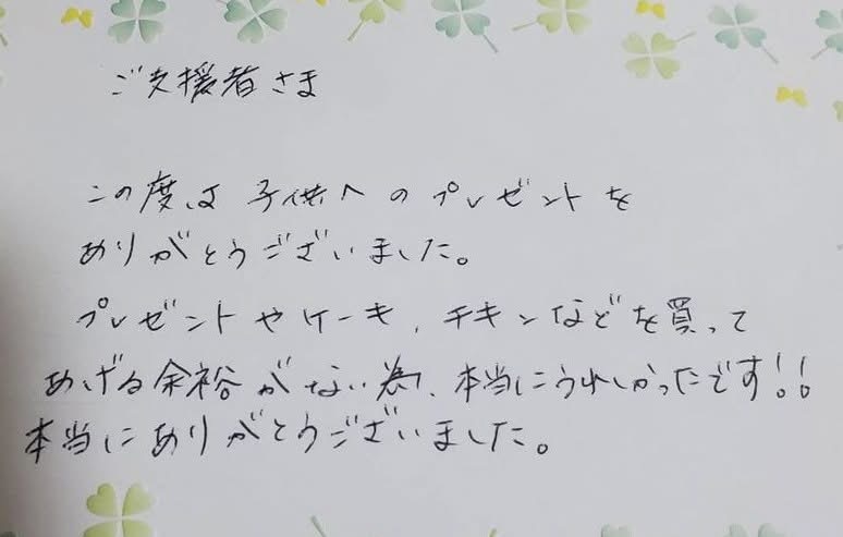 ご支援いただいてる皆さまへ【Xmasプレゼント】のお礼メッセージが届きました。